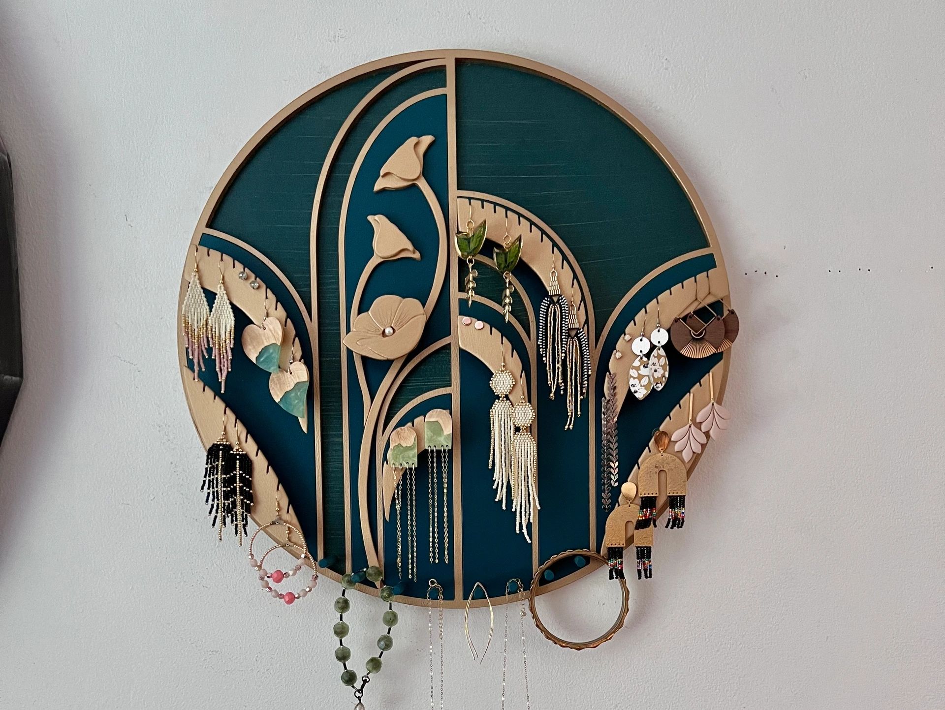 Using a mix of traditional woodworking techniques, lots of experimentation and play and the occasional touch of laser tech, I love to create unique jewelry displays that blend form with function, turning your jewelry into wall art where you can see it and wear it every day.