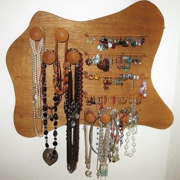This photo shows the first jewelry display I made on a scroll saw in my 7th grade woodshop class. Although it was more function over form, my mom used it for almost 20 years!